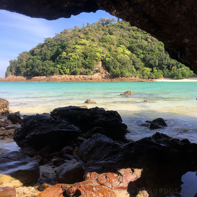 Our boat leaves Shwe Khunn Gyi Island, sails through the channel between this island on left and Shwe Khunn Lay Island on the right, at the arrow point in the picture above.